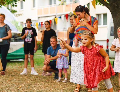Am 19. September 2025 stand der Stadtteil Regenstein wieder ganz im Zeichen des Miteinanders. Beim 3. Nachbarschaftsfest erlebten Besucherinnen und Besucher einen abwechslungsreichen Nachmittag mit Musik, Bewegung und guter Laune. Vom Kinderturnier und dem Auftritt des Chors der Kita „Am Regenstein“ über eine beeindruckende Papageienshow bis hin zum Theaterstück „Vom Fuchs, der den Verstand verlor“ – für Groß und Klein war etwas dabei. Auch das beliebte Wikingerschach-Turnier, die mitreißende ZUMBA Kids-Gruppe, die Harzer Dance-Crew und viele weitere Programmpunkte sorgten für Stimmung und Freude im Quartier.